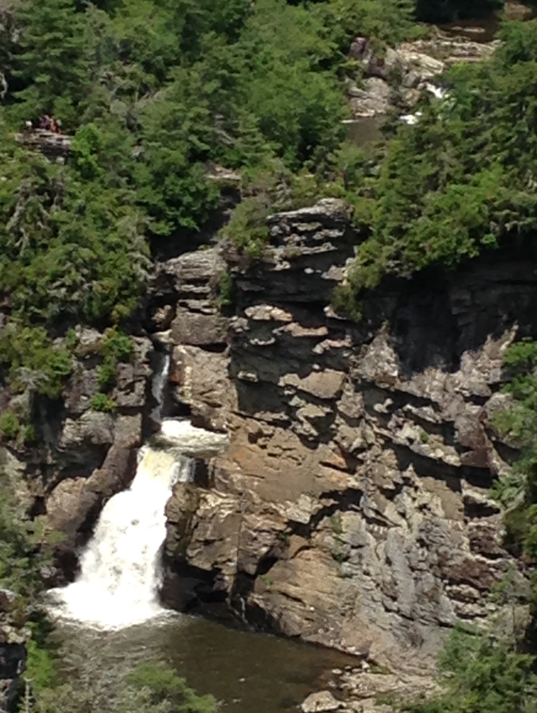 IMG_5779Scattered in the midst of the mountains are the waterfalls…most of which play hide and seek. A few stand out in the open allowing glimpses from a distance, as if inviting me to find the path. So much so, that I stop the car, put it in park, and take to the trail. The rhododendron blooms pink and white and gathers along the roadways, but are mostly along the trails leaving a carpet of pedals under my feet. The wind whispers and then shouts a greeting, as do the heart shaped rocks and leaves he leaves in my path.  Down into the valley I walk, until the sounds of the waters reach my ears, causing my curiosity to move my feet faster. Standing with my face to the falls I breathe in the beauty, soaking it up for my return trip up and out. Taking another fork, I climb higher until I can look back and see the water throw itself over the cliff as a whole. The rumbling sounds sing and soothe even in their power.
